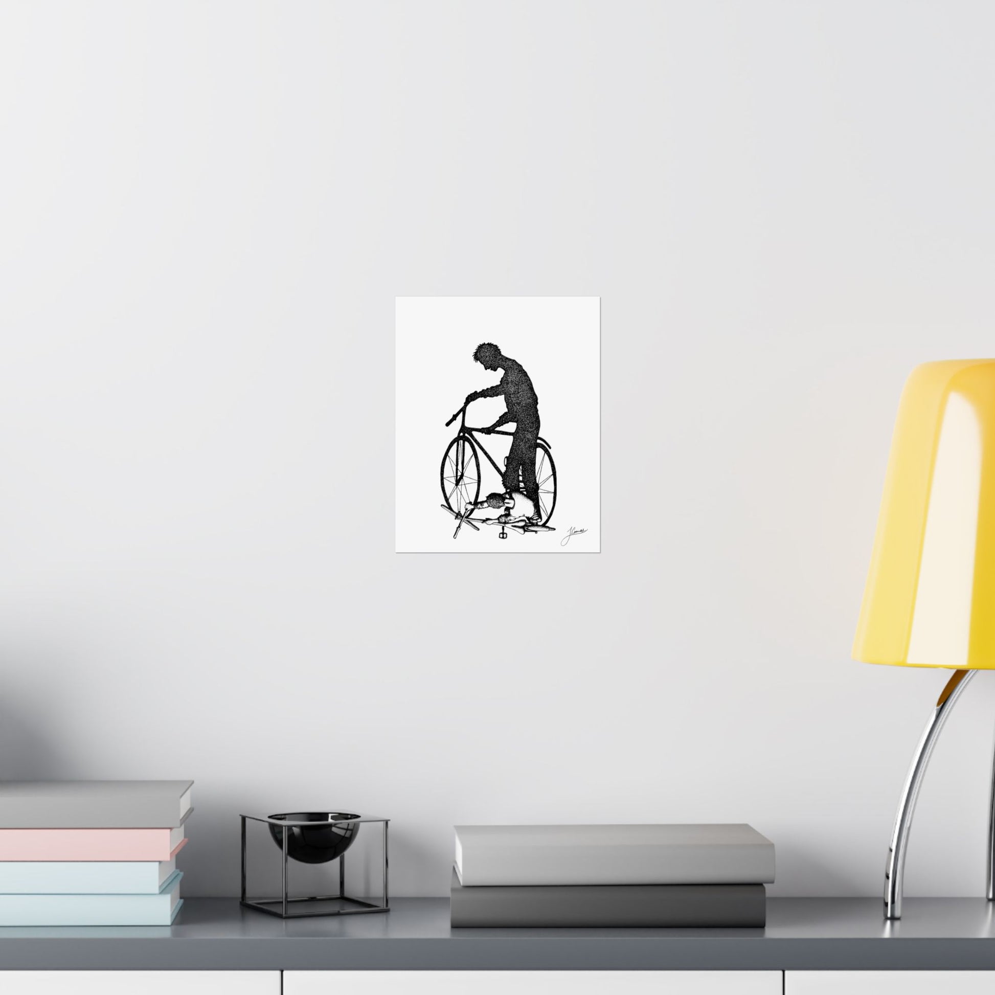 Cycling in the sun is a inspired by the incredible artist, Alex Senna (go check out his Murals, they are awesome!). Specifically, it was inspired from a mural he did in Detroit along the DeQuinder Cut. My take on Alex Senna's work would look beautiful up on your walls next to your endless collection of road, mountain, and gravel bikes!