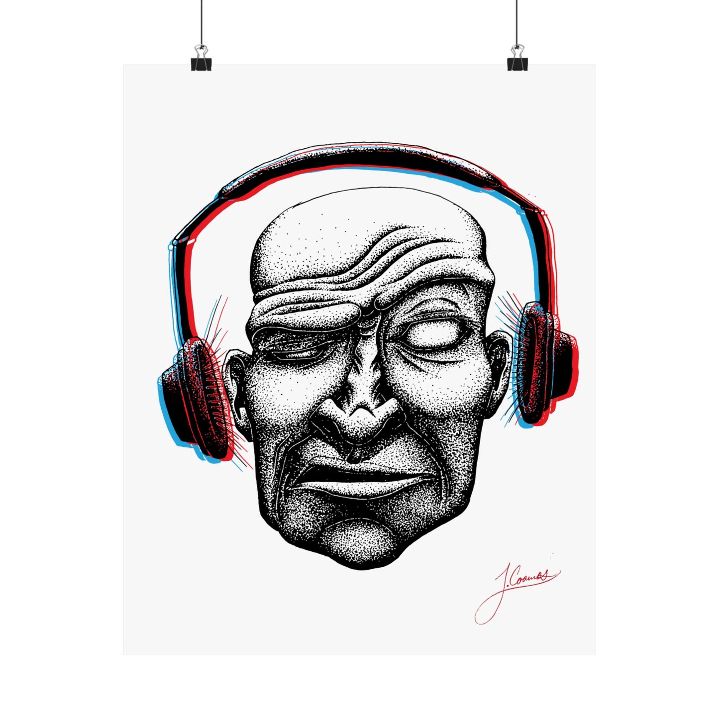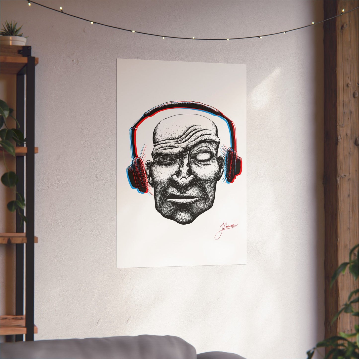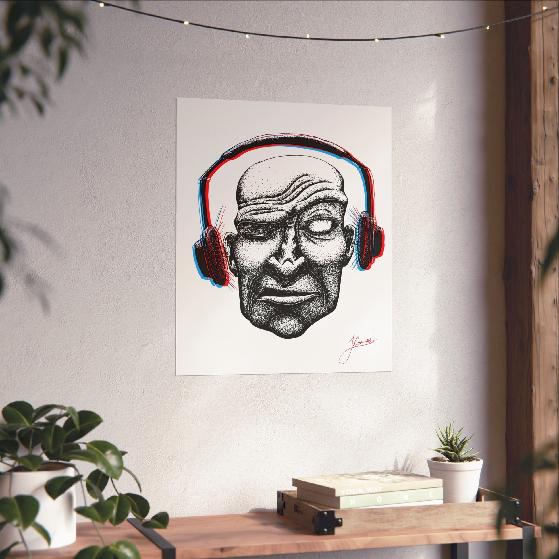 Whats This Noise is inspired by the older generations inability to understand the evolution of music and pop culture. The old man may look like he is not happy about the music, but if your a metal fan, maybe he just has a bad ass "stank face" for some radical music. Either way it will look amazing on your walls!